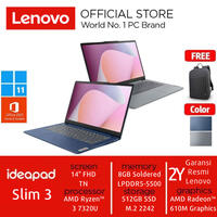 Lenovo IdeaPad Slim 3 hadir dengan desain tipis dan performa solid, cocok untuk mahasiswa yang butuh laptop untuk belajar maupun hiburan ringan. Laptop ini menggabungkan performa AMD Ryzen 3-7320U dengan RAM 8GB dan storage 512GB SSD.