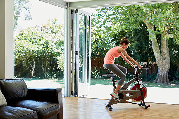 Ilustrasi menggunakan spinning bike di rumah. Foto: Morsa Images/istockphoto