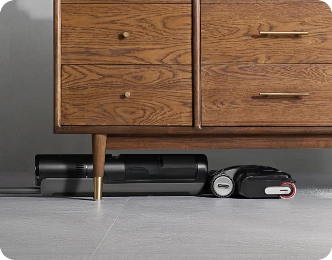 Self-Cleaning dan Pengeringan Udara Panas 30 Menit: Setelah dipakai, kamu tidak perlu cuci roller brush manual. Dia bisa cuci sendiri dan dikeringkan dengan udara panas bersuhu 60°C hanya dalam 30 menit. Ini penting supaya vakum tidak berbau apek gara-gara sisa air pel yang lembap.