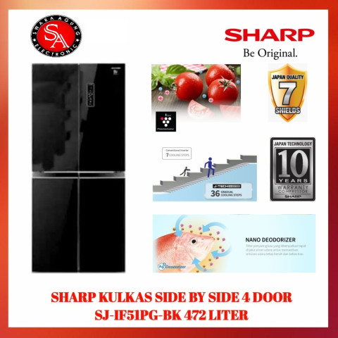 Kulkas 4 Pintu SHARP SJ-IF51PG BK Black Glass hadir sebagai solusi penyimpanan premium untuk kebutuhan rumah tangga modern. Dengan kapasitas besar 472 liter dan desain Black Glass yang elegan, kulkas ini tidak hanya mempercantik dapur, tetapi juga membantu menjaga bahan makanan tetap tersusun rapi, higienis, dan mudah dijangkau. Produk ini khusus untuk pengiriman area Medan.